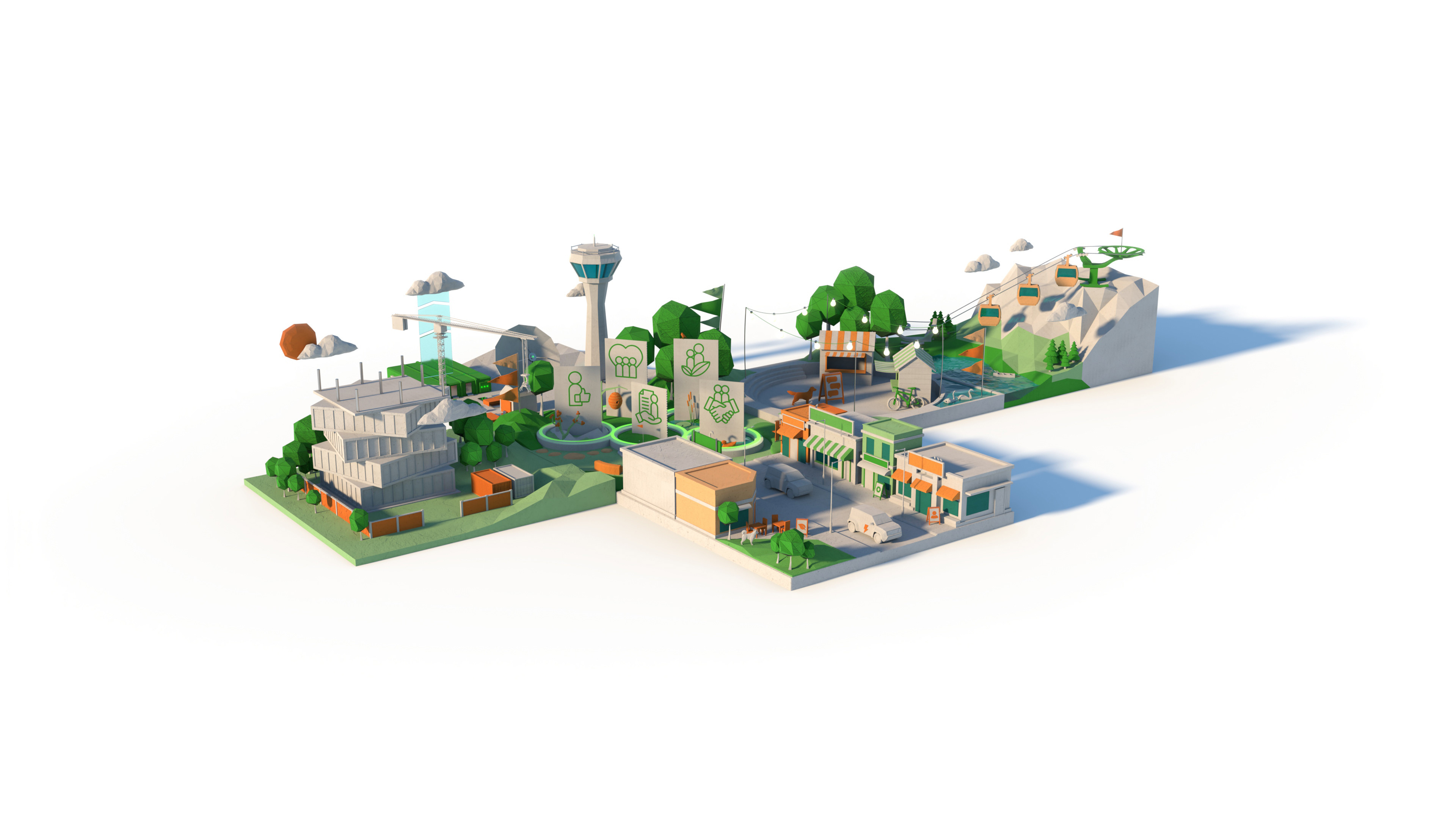 To communicate and embed a leading civil engineering company's core values across their UK & Ireland division, a suite of mini worlds representing the ethos of each value were created in 3D.
