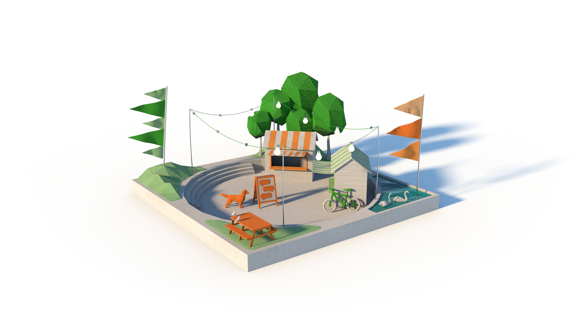 Working closely together, the Art Director and I envisioned worlds that were hand-crafted in a maquette style, with card and paper textures providing a miniature feel. These images and animations were used across various collateral to support the messaging.