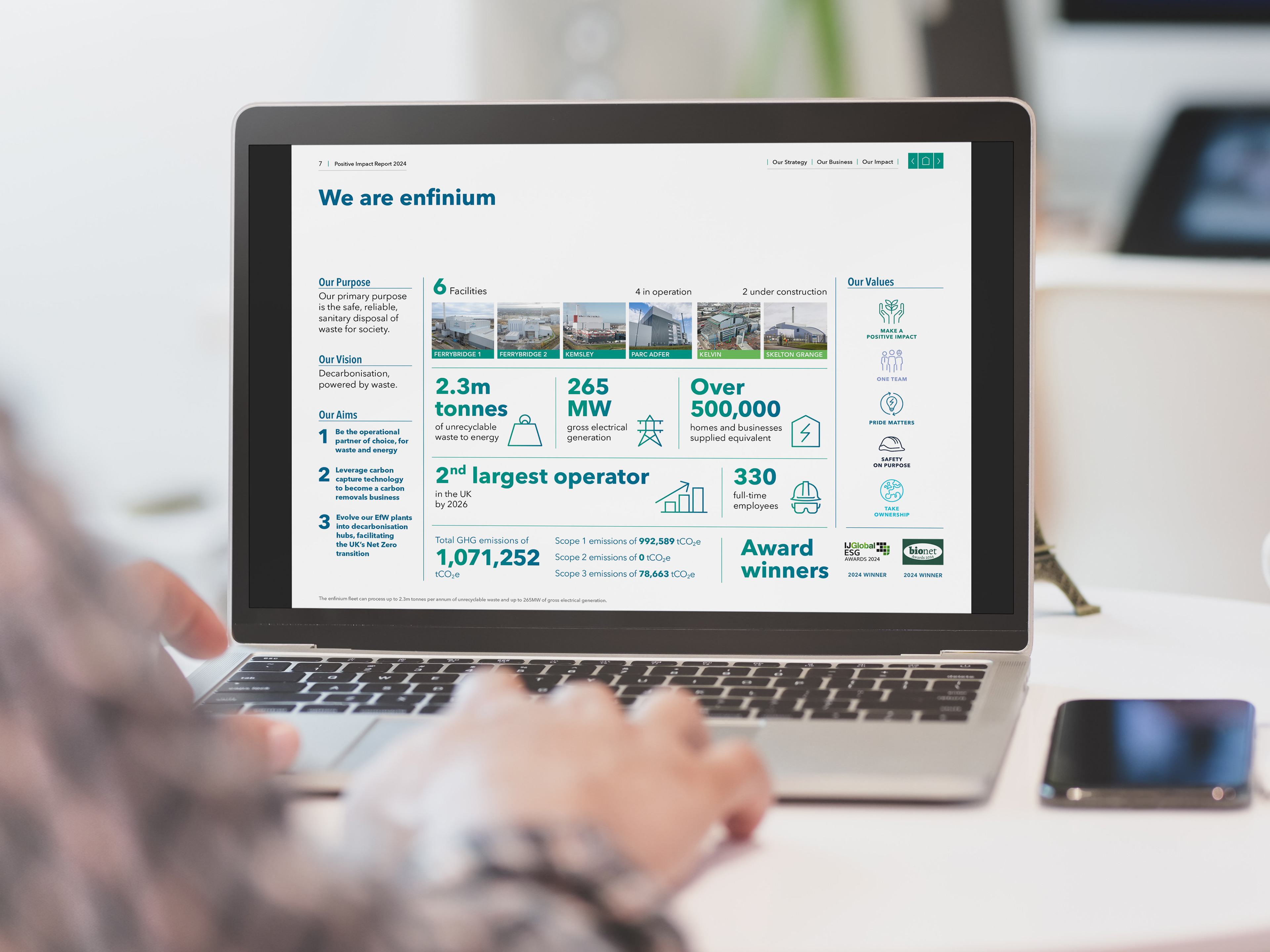 enfinium have a responsibility to their investors, government, customers and the wider community to communicate what they’re doing to meet the UK’s sustainability goals. We created a report for April 2023 to April 2024 detailing their sustainability goals and the progress they’ve made towards them.
