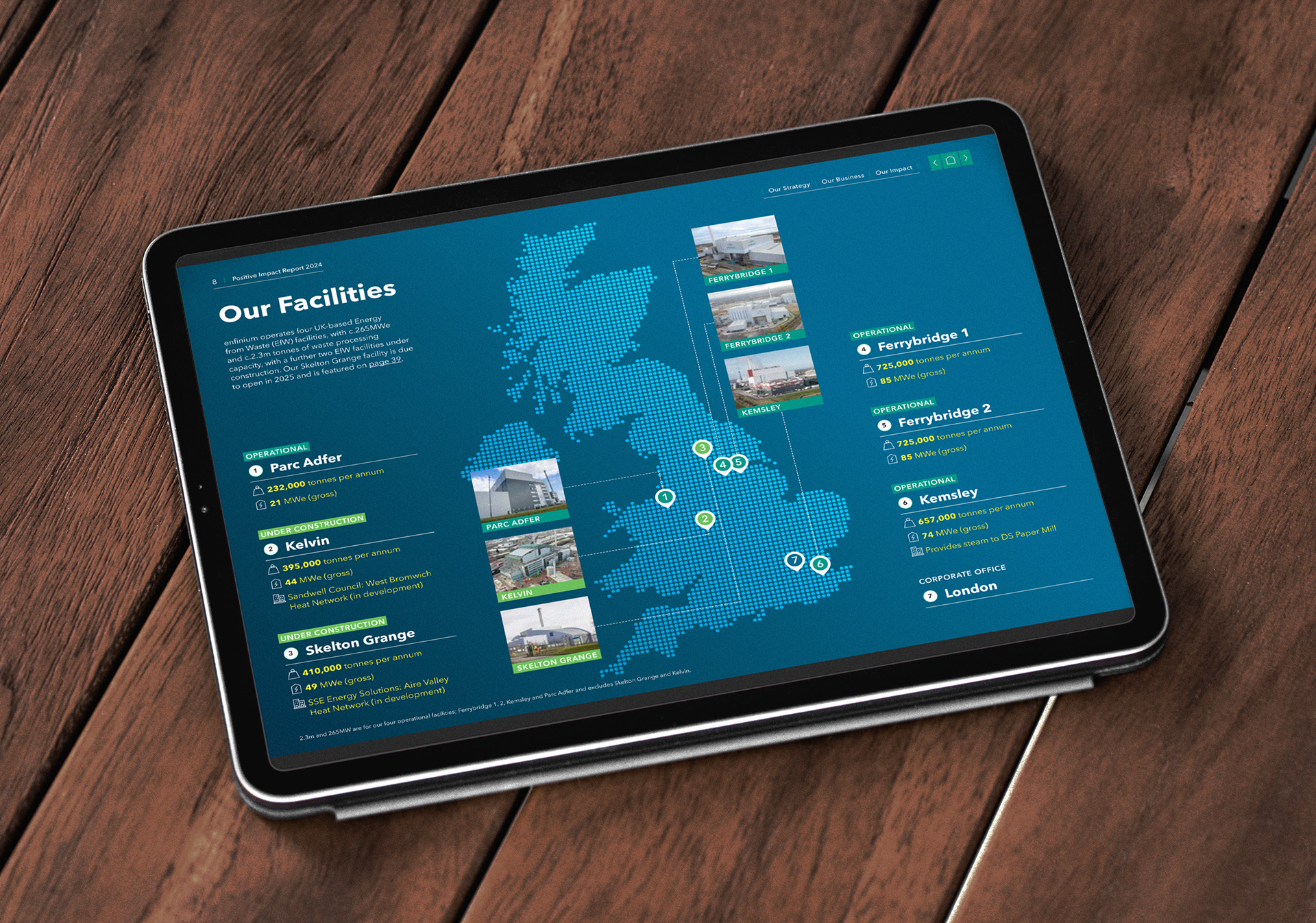 enfinium have a responsibility to their investors, government, customers and the wider community to communicate what they’re doing to meet the UK’s sustainability goals. We created a report for April 2023 to April 2024 detailing their sustainability goals and the progress they’ve made towards them.